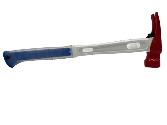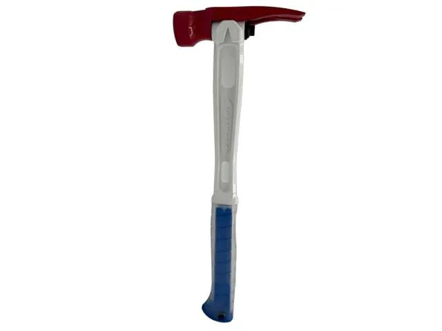 Featuring a Smooth Face Red Ceramic Coated Head with Old Glory Lasered etched on the top of the head, M1 16" Framing Handle, and a Clear Over Blue Curved Grip. This 15oz titanium hammer with a smooth face combines style and performance for framing tasks that require a delicate touch and lasting impact.Features